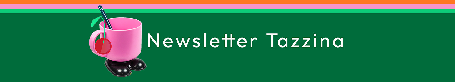 Newsletter Tazzina è gratuita. Ma puoi scegliere di sostenere il mio lavoro e aiutarmi a rendere Tazzina ancora più curata. Come? Con un abbonamento a pagamento, mensile o annuale. Oppure con il piano Sponsor.